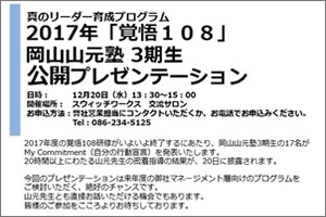 真のリーダー育成プログラム 2017年「覚悟108」岡山山元塾 3期生 公開プレゼンテーション 12月20日(水)開催