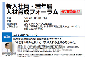 人材育成フォーラム-新入社員・若年層について 2018年1月26日(金)参加費無料
