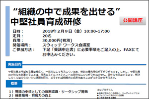 公開講座“組織の中で成果をだせる”中堅社員育成研修について 2018年2月9日(金)10:00~17:00