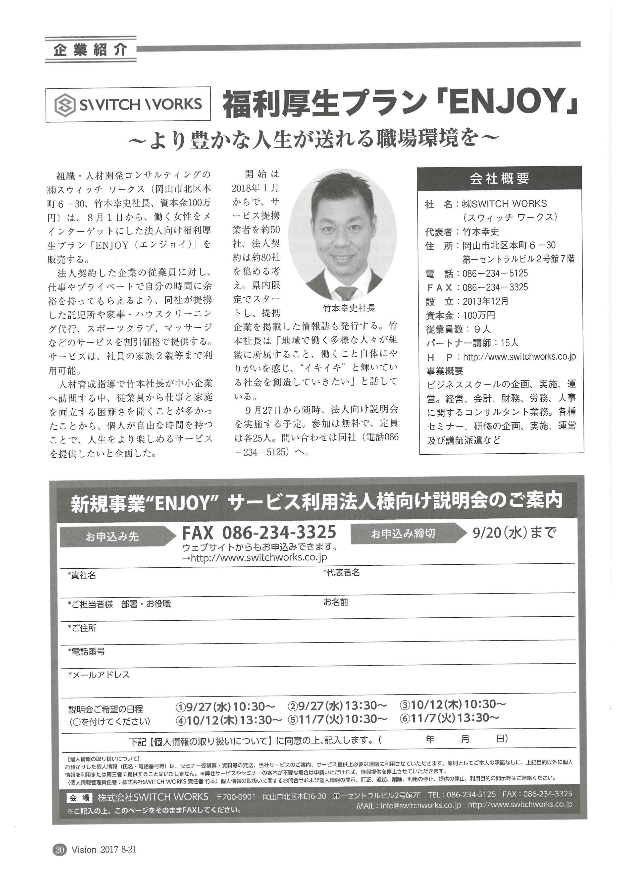 ㈱瀬戸内海経済レポートVISION_記事 「福利厚生プラン『ENJOY!』」