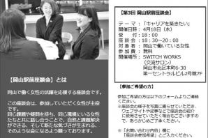 【女性限定 岡山駅前座談会 参加者募集のお知らせ】 開催日:2018年4月18日(水)18:30~20:00
